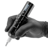 The heart of the machine is the completely revamped PowerBolt II. The digital OLED display shows both the stitch frequency in Hz and the voltage in Volts. The battery charging status and the Bluetooth connection are also displayed. The built-in digital timer makes measuring the tattoo time on the side easy.